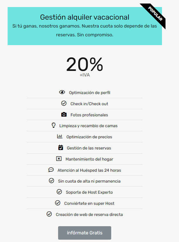 Gestionamos tu vivienda vacacional a través de Airbnb mejorando, actualizando, y adaptando tu anuncio para mejorar su posicionamiento y tus beneficios mes a mes. Nuestro objetivo es que seas Superhost.